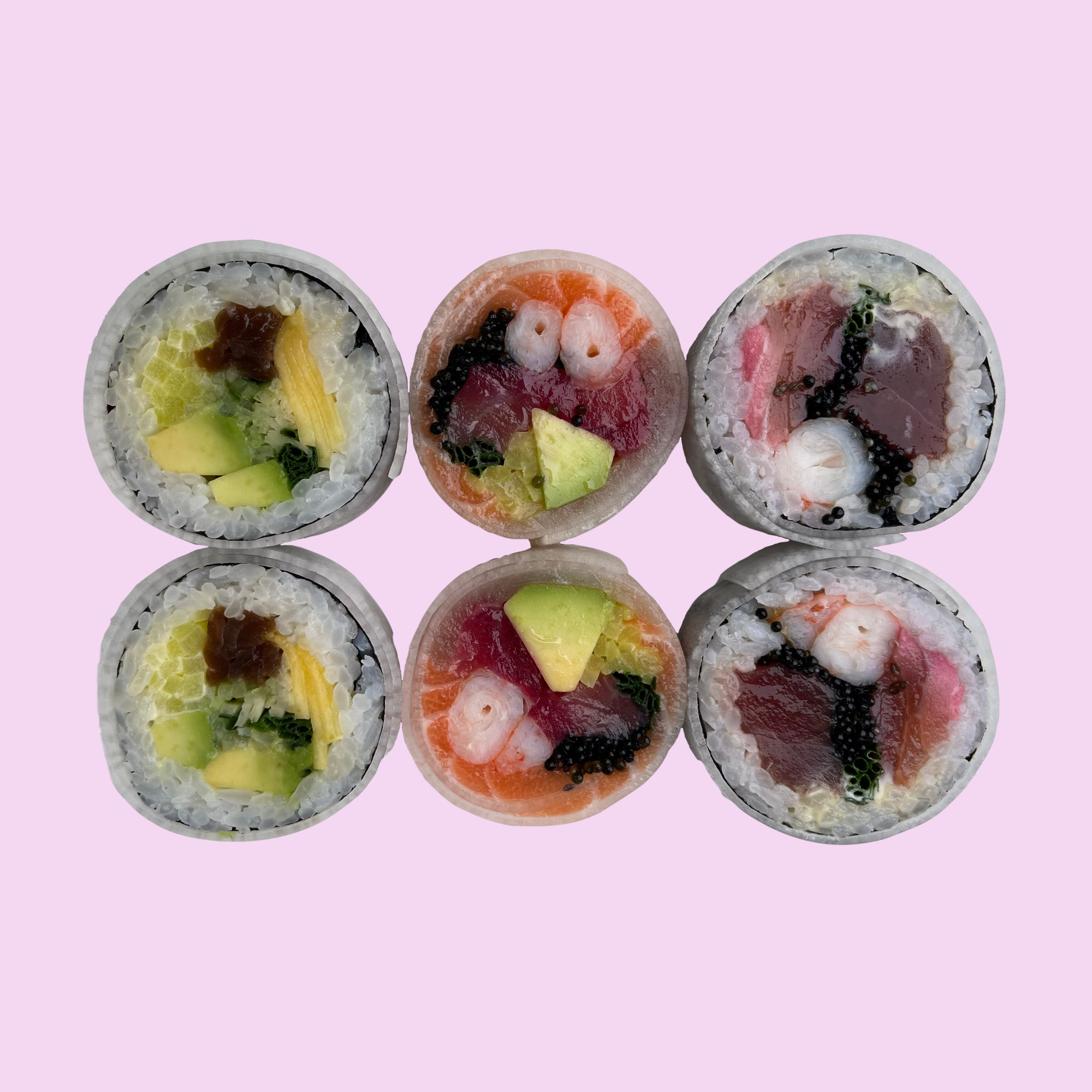 6 futomaki crab salad, 6 futomaki ebi tempura, 6 futomaki ebi yaki,